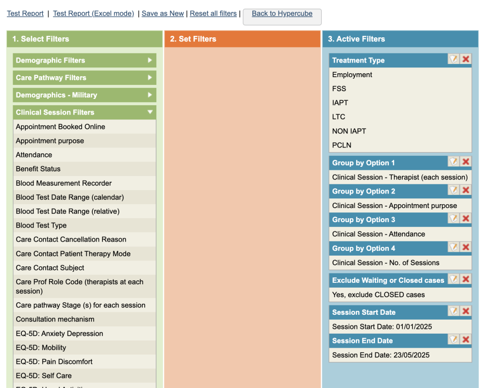 There is an extra group by option available to this report called Clinical Session – No. of Sessions. It shows how many contacts (sessions) each referral has, ie the No. of sessions the patient DNA’d.