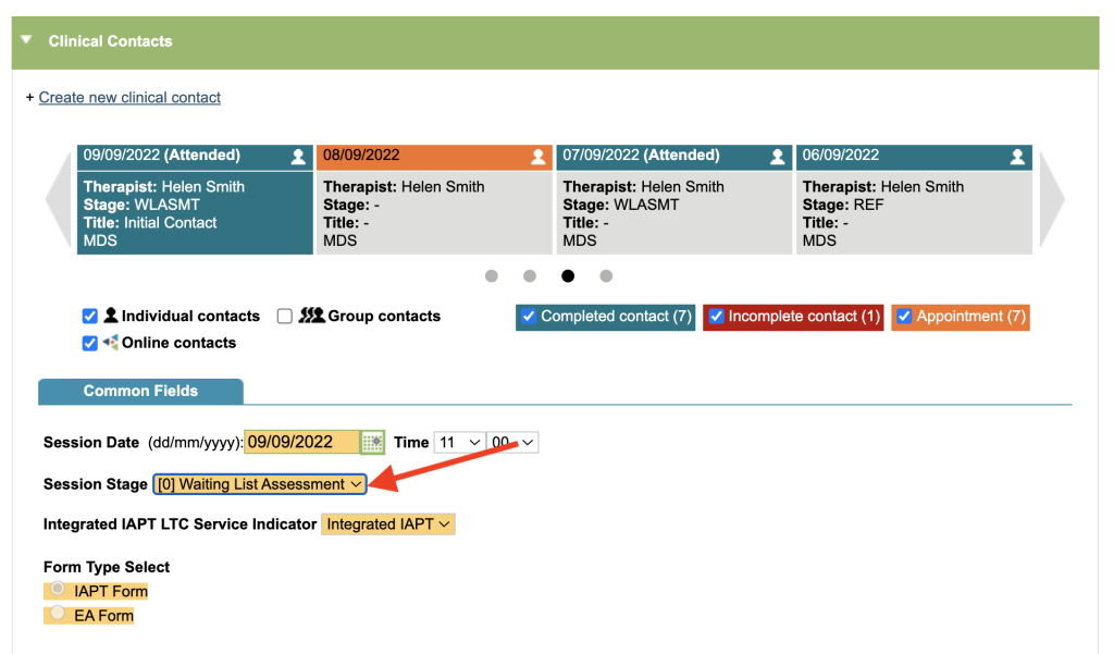 If the wrong stage has been recorded, you will need to edit the clinical contact.