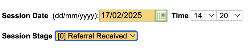 The drop down list will automatically default to the current care pathway stage, but you are able to select from all the care pathway stages that the client has moved through in the referral.