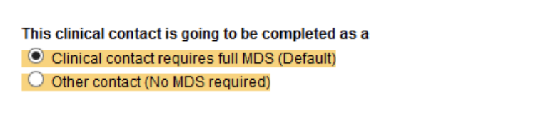 Firstly you need to record whether this contact is an MDS (Minimum Data Set) contact, or where it is a contact where MDS does not need to be recorded.
