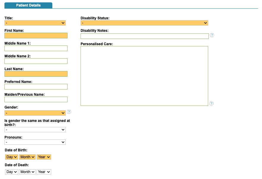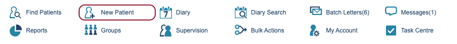 You will be able to see the ‘New Patient’ icon towards the top of iaptus. Before adding a new patient record, please use the Patient search to check that the patient doesn’t already exist.