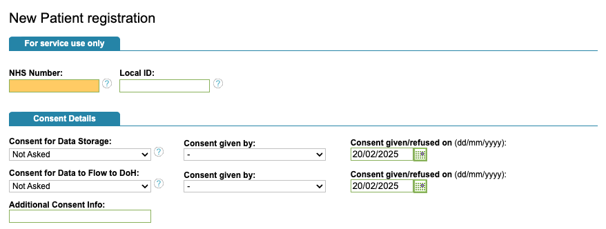 Once you have established that a record does not yet exist for that person, click on the ‘New Patient’ icon.