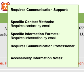 Information recorded in the Accessibility fields will be saved and shown by the orange icon above the boarding card.