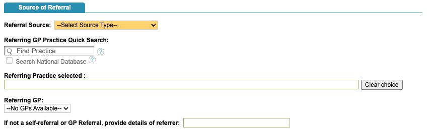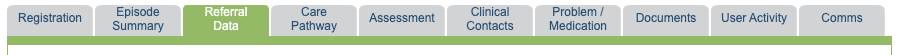 Click on the Referral Data to complete a referral for the patient. The form is split into the following sections: