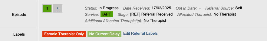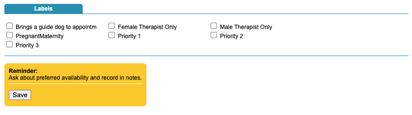 Superusers can configure the referral labels and the reminder notes that you can see in orange.