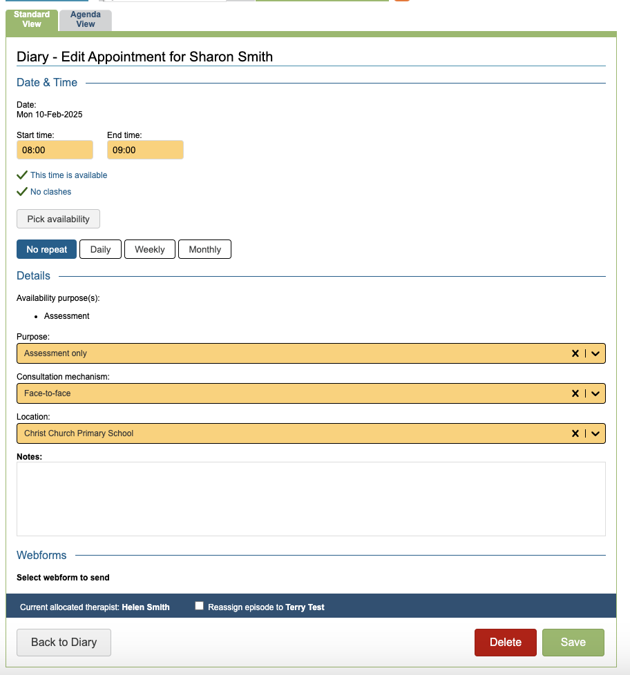 - The option to allocate/re-allocate the patient to the therapist whose diary they are being booked in for.