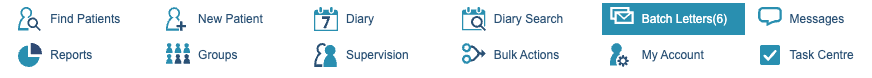 Batch Letters is an area that can be used to manage the printing and sending of patient letters and can be accessed in the icon menu.