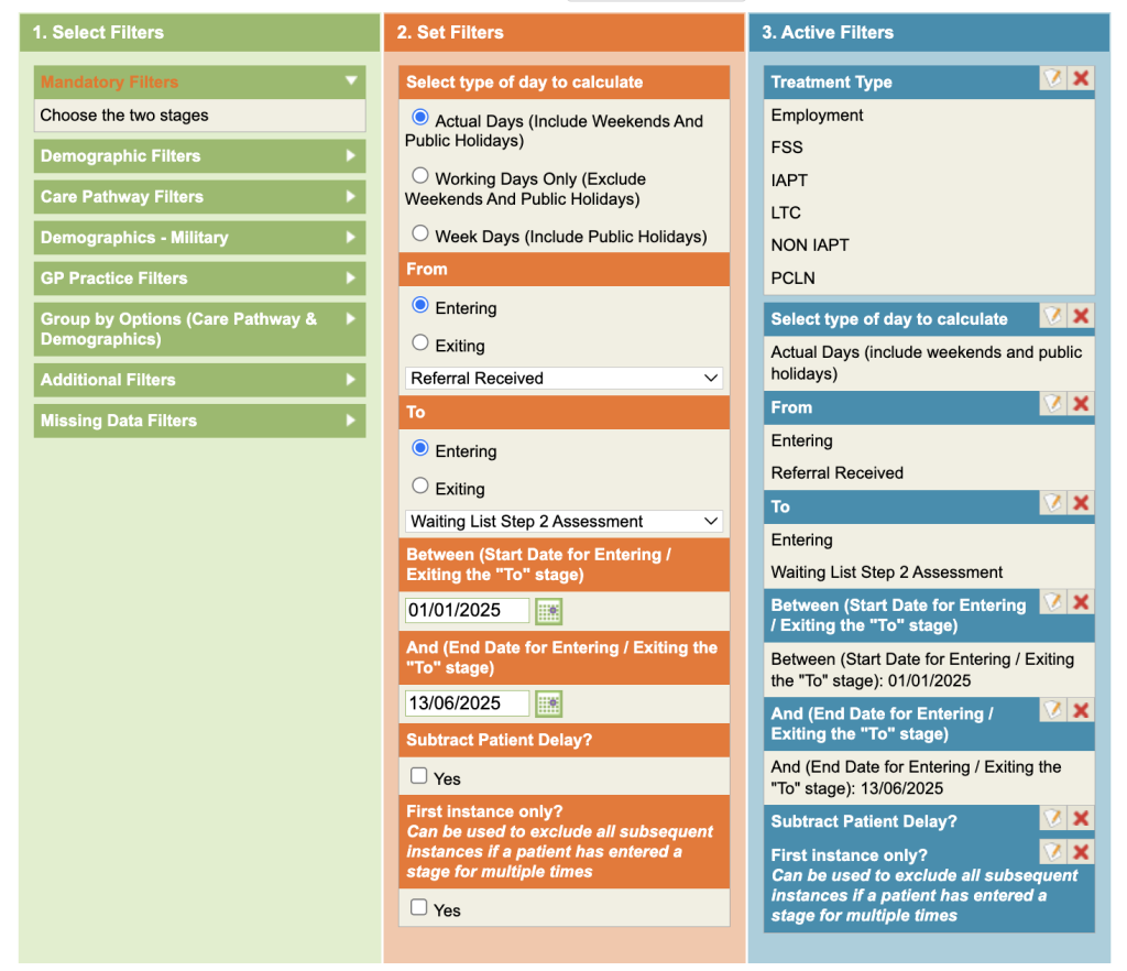 Complete the mandatory filters. Once the report is run, you will be provided with the numbers of days between the stages and how many referrals were affected.