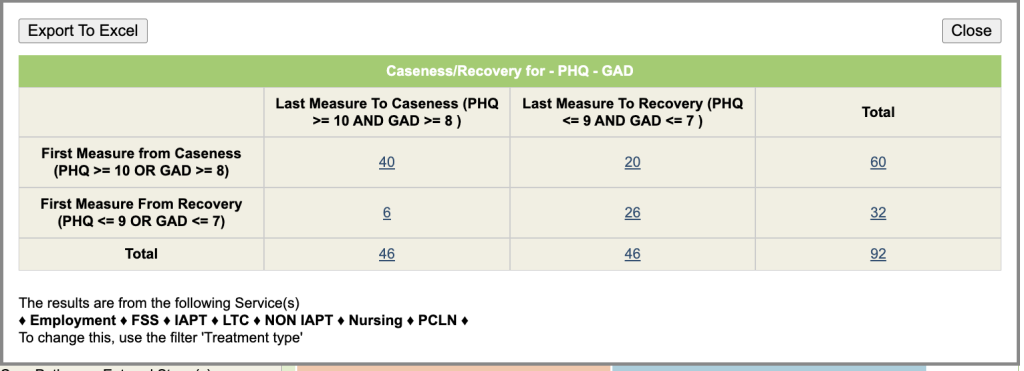 This report uses the first and last session where PHQ and GAD scores are recorded.