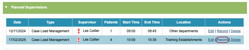 - Under Planned Supervisions in the Supervision Overview, click Record.