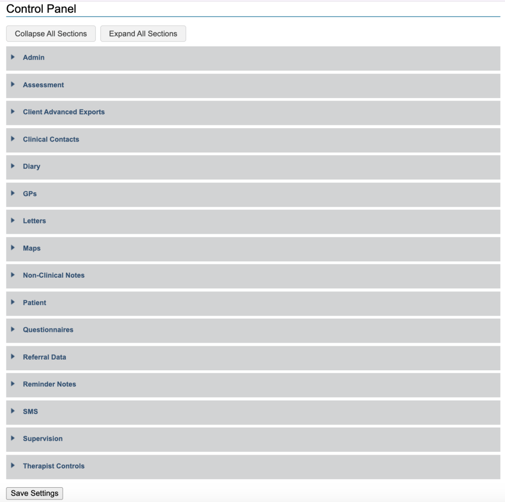 Alternatively, you can choose for only superuser therapists to have access to this section, alongside therapists.