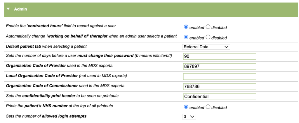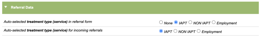 This option works in the same way as the above, but is specifically for Incoming Online Referrals (if you have an online self-referral form that links with iaptus). The option selected here will be auto-selected for all referrals made via Incoming Online Referrals. For more information on Online Referrals, please raise a Support Log and your Account Manager will be happy to help.