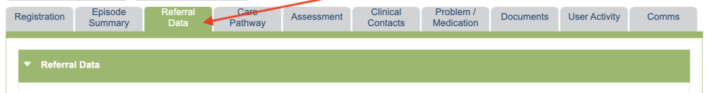 The Referral Data section allows services to select referral options.
