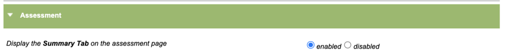 If a service has a bespoke tab within the Assessment section, this option will allow the main Summary tab within this section to be disabled.