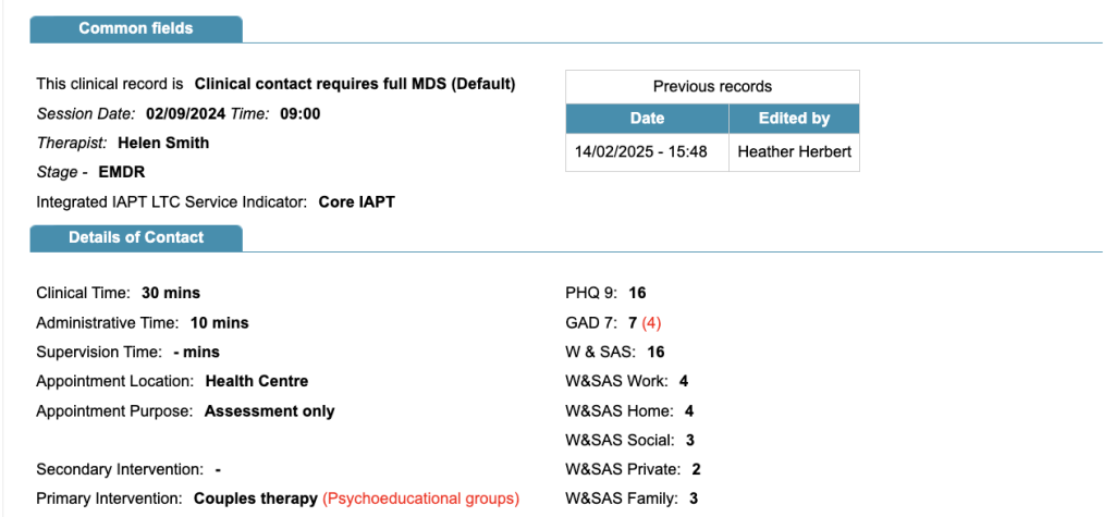 This option will enable a small table (see below) within a clinical contact. The table will indicate if the contact has been edited and by who. When a row is selected within the table, the previous value for a changed field, will appear in red, in brackets.