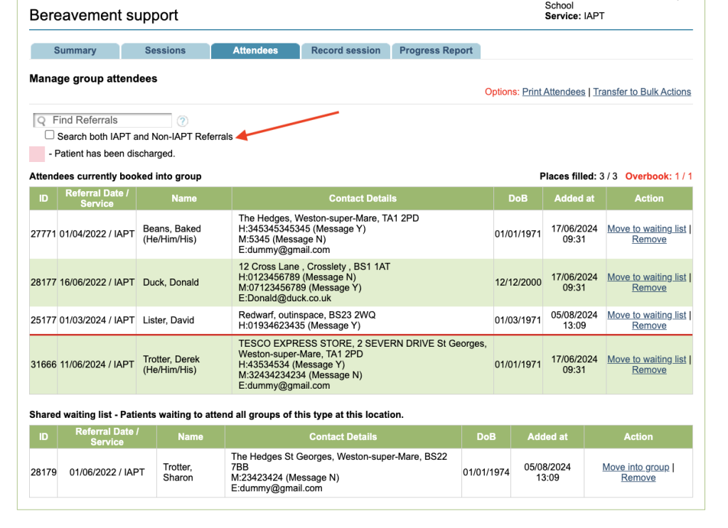 Typically when a group is set up as IAPT, only IAPT referrals can be added to the group. Enabling this option means you will also find non-IAPT referrals when searching for participants to add to the group.