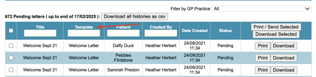 Add a column to batch letters to display the template type