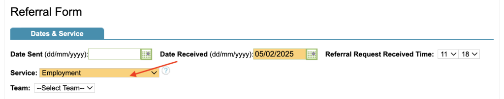 Auto-selected treatment type (service) in referral form