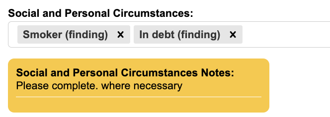 A reminder/prompt can also be added beneath the Social and Personal Circumstances section on the referral form.