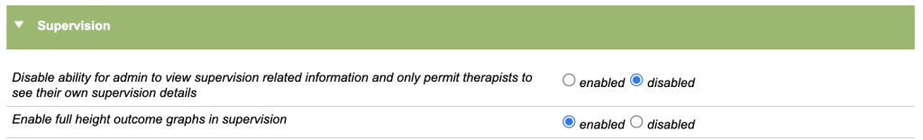 If enabled, this stops admin users from viewing supervision information and only allows therapists involved in the Supervision to view it.