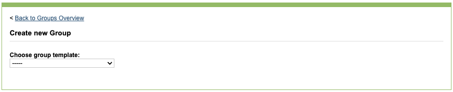 iaptus will ask you to select a group template; this will help you easily configure the fields for your group. Group templates can be created by a Superuser using the ‘Groups Template Editor’ option.