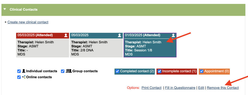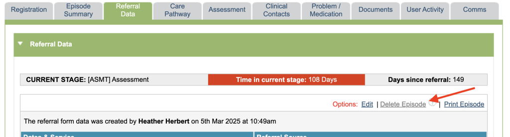 Superusers can delete a treatment episode if there are no clinical contacts, appointments or questionnaire data relating to that episode.