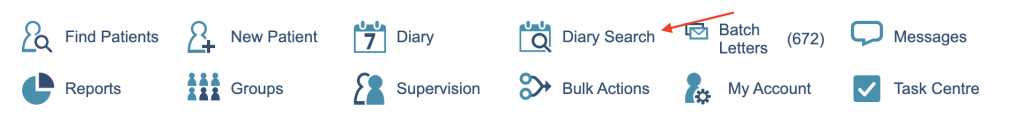 The diary search section of the icon menu is one of two diary areas in iaptus, the diary being the other option.
