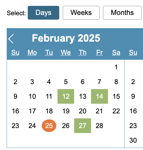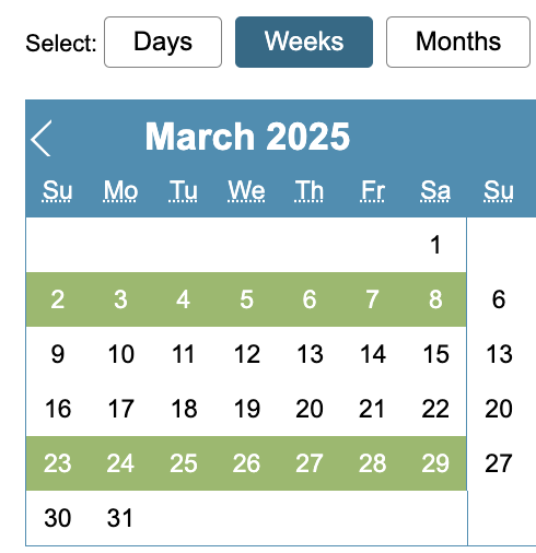 Weeks – will allow you select/deselect whole weeks