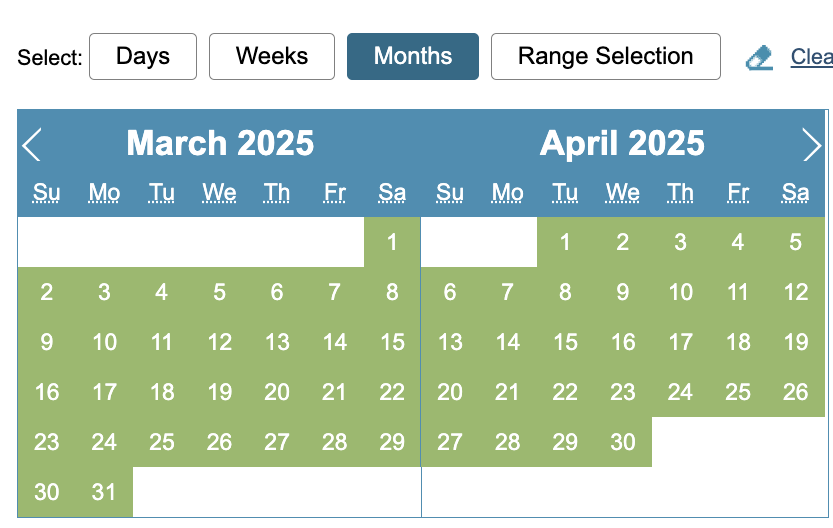 Months – will allow you to select/deselect whole months