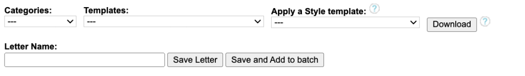 To add a new letter, simply start typing in the letter editor area. If you wish to use a pre-created template, you will need to select these from the following drop downs: