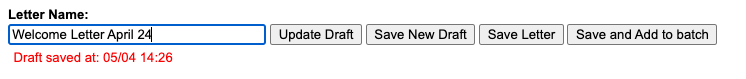 Once the letter is complete, there are several save options above the letter editor area. These vary depending on the letter currently open: