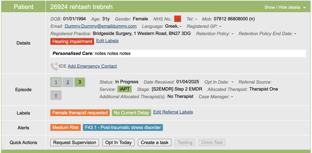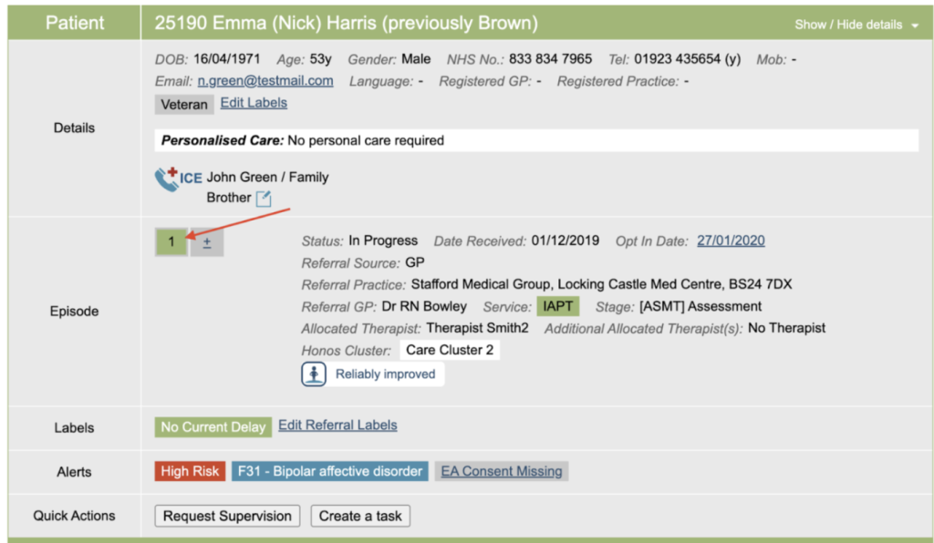 On the boarding card, check which number the TT (IAPT) referral is as you will use this later when linking the episodes together.