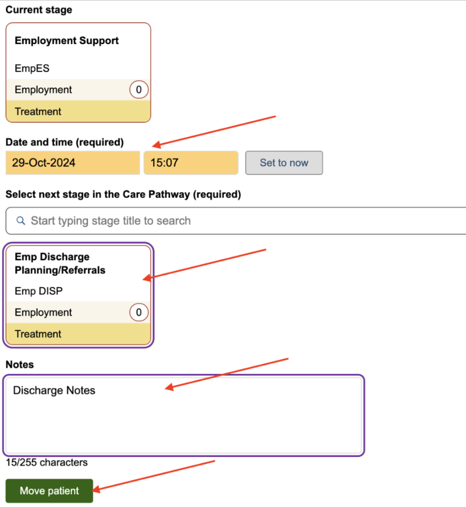 - Go to the Move Patient in Care Pathway section.