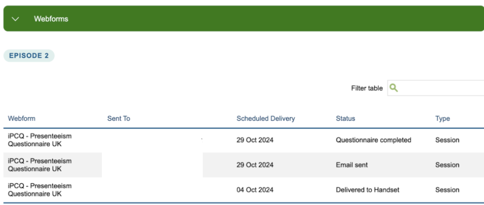 If your service has opted in to use Webforms you will be able to select the IPCQ from the drop down list. This will send the patient a secure link to the questionnaire that can be completed ahead of the appointment.