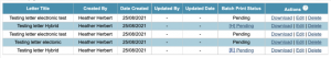 Delete any Pending letters including Hybrid or Electronic. If the letters have been on the patient for more than 48hrs you will have to request your Superuser to Delete them.