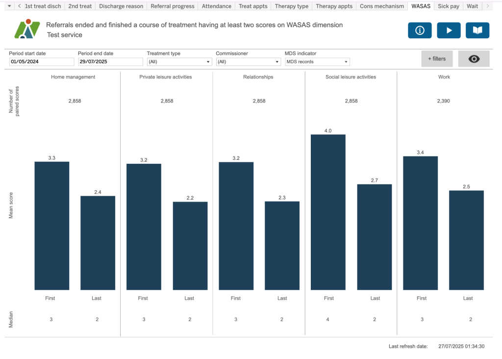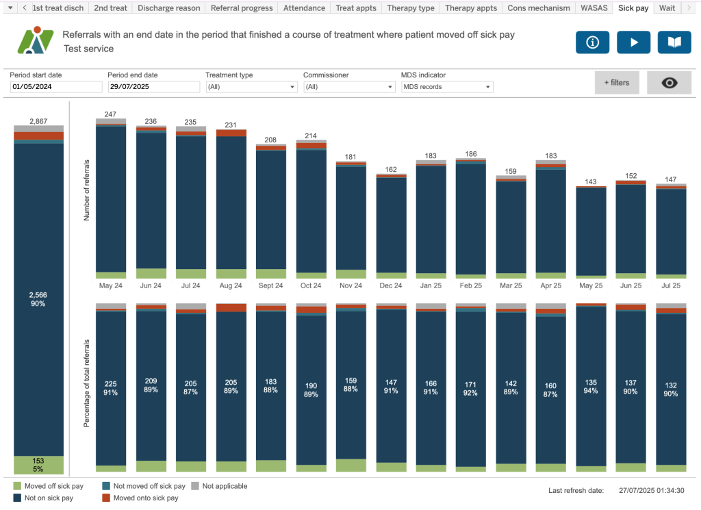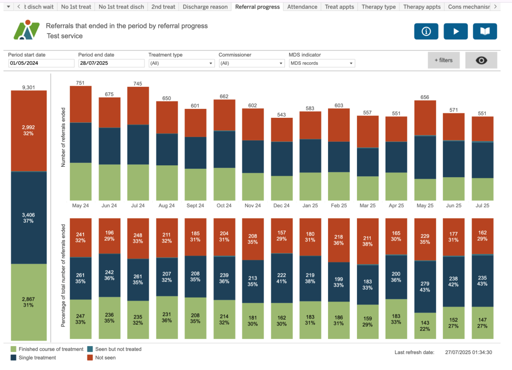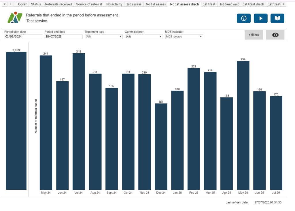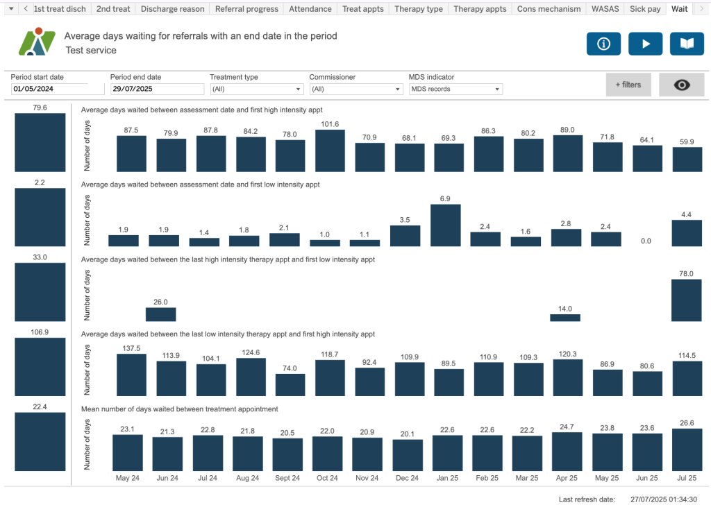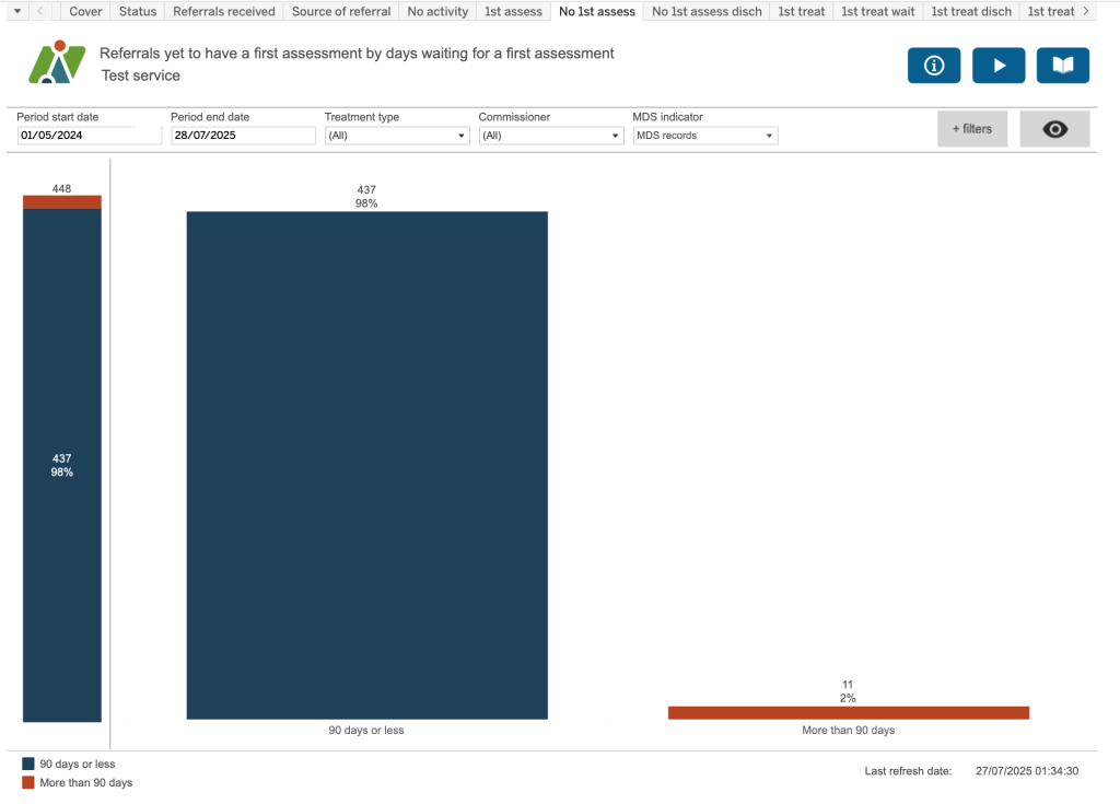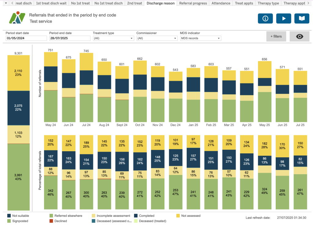 Please remember that the NHS England reports are based on a snapshot of data provided after the month end. These dashboards will reflect the data that is currently in iaptus (as per the last refresh date shown at the bottom of the dashboards) and so may have been updated since submission to NHS England.