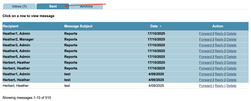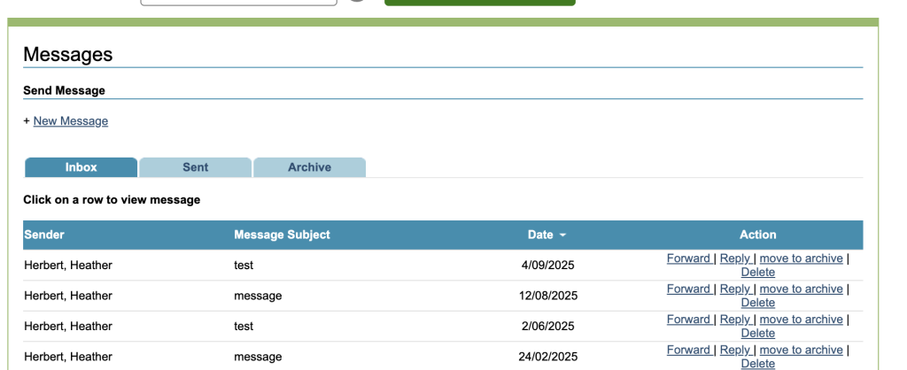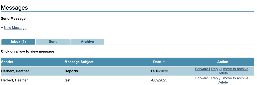 Messages can be viewed in the inbox, and will be shown in bold if they have not been read yet.