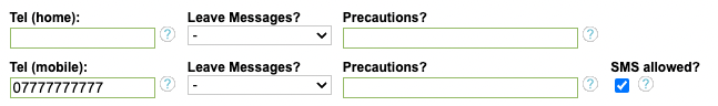 Alternatively, if you wish to send Online Questionnaires via SMS, a mobile number must be present on the registration form along with the SMS allowed box ticked.