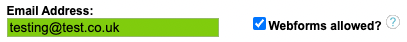 In order to send electronic questionnaires to patients via email there must be a valid email address listed in their patient In order to send Online Questionnaires to patients via email there must be a valid email address listed in their patient registration form and the “Webforms allowed?” box must be ticked. You can enable or disable questionnaires via email for individual patients by ticking or unticking this box.