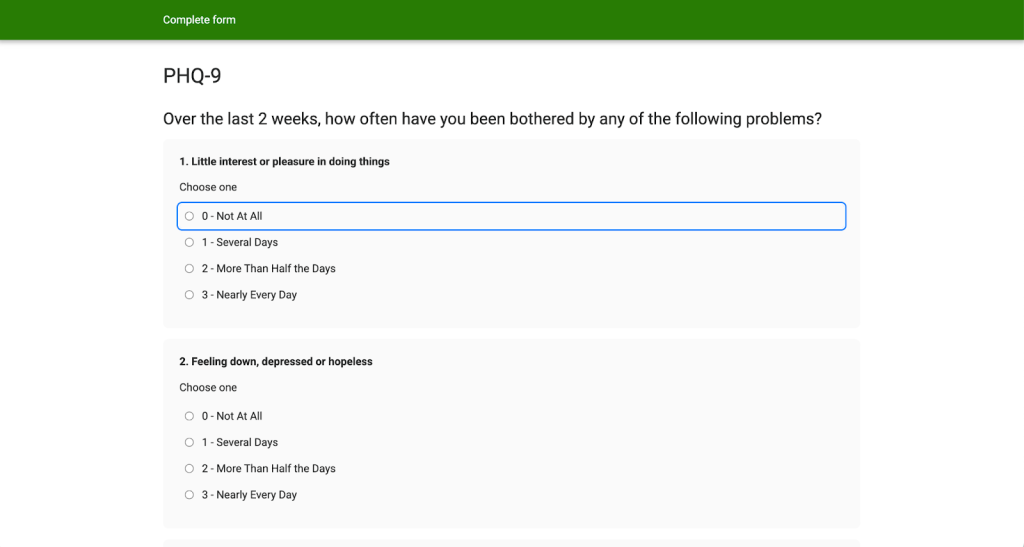 One of the key aspects of the Talking Therapies approach to treatment is the ongoing recording of key outcome measures such as PHQ, GAD and WSAS. The Talking Therapies handbook encourages therapists and practitioners to go through these measures with the patient at each appointment. On average it can take 7-10 minutes in a 35 to 45 minute appointment to get a response from the patient for each question and enter it into the clinical system.