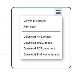 In the right hand corner of the graph, you have the options that will allow you to print or download the data in the graph in different formats.