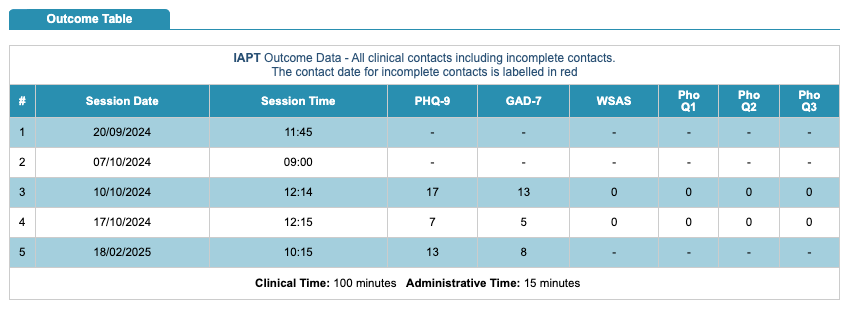 Viewing more than one questionnaire scores will remove the threshold line, as the outcome measures have different threshold bands.