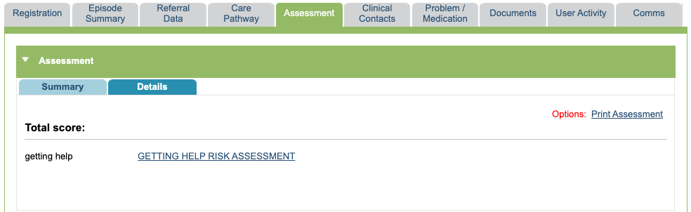 You can also print a summary of the assessment by selecting the ‘Print Assessment’.