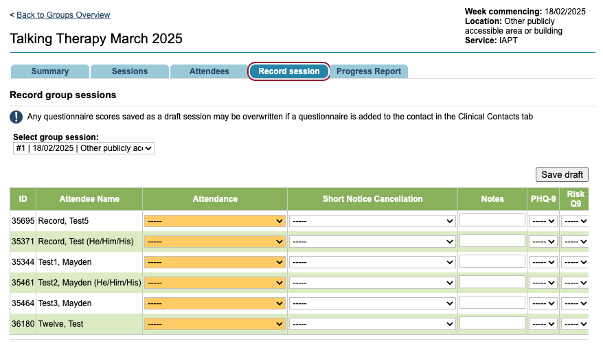 Below are the fields you have already completed when creating the group however you can amend these if need be. The overall session notes are not for patient specific notes, but more general notes about the group.