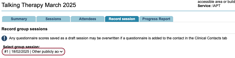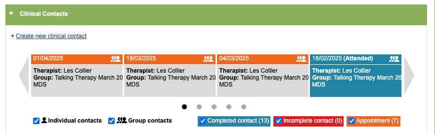 You can view any notes recorded for the patient in their group session by viewing the session the patient’s Clinical Contact tab.