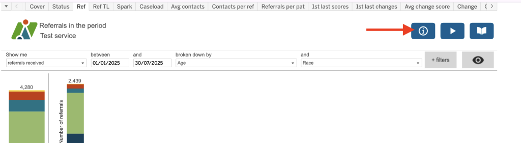 Details of the calculations used for each report, as well as additional information, can also be found in the i tool tops in the top right of each report, as shown.