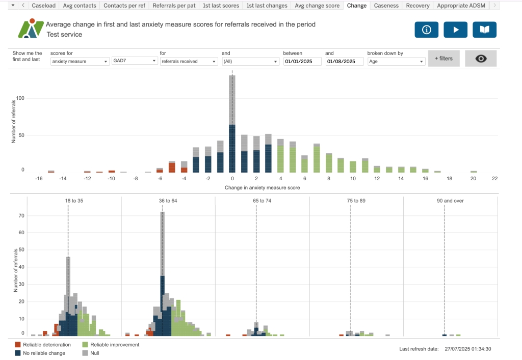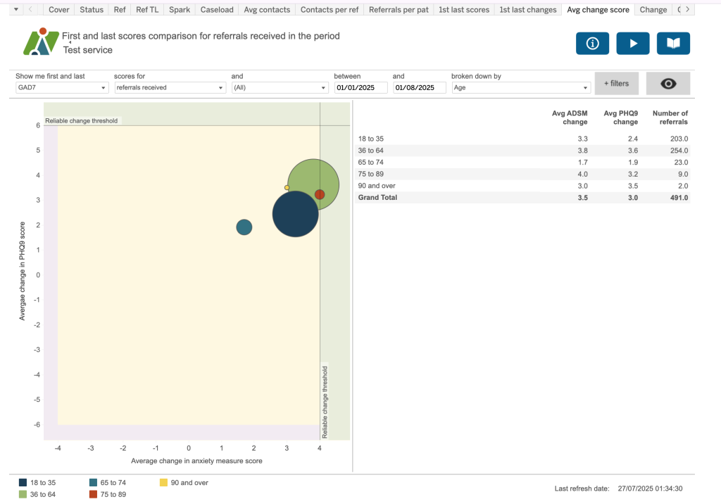 Average change in first and last anxiety measure scores for referrals received in the period.