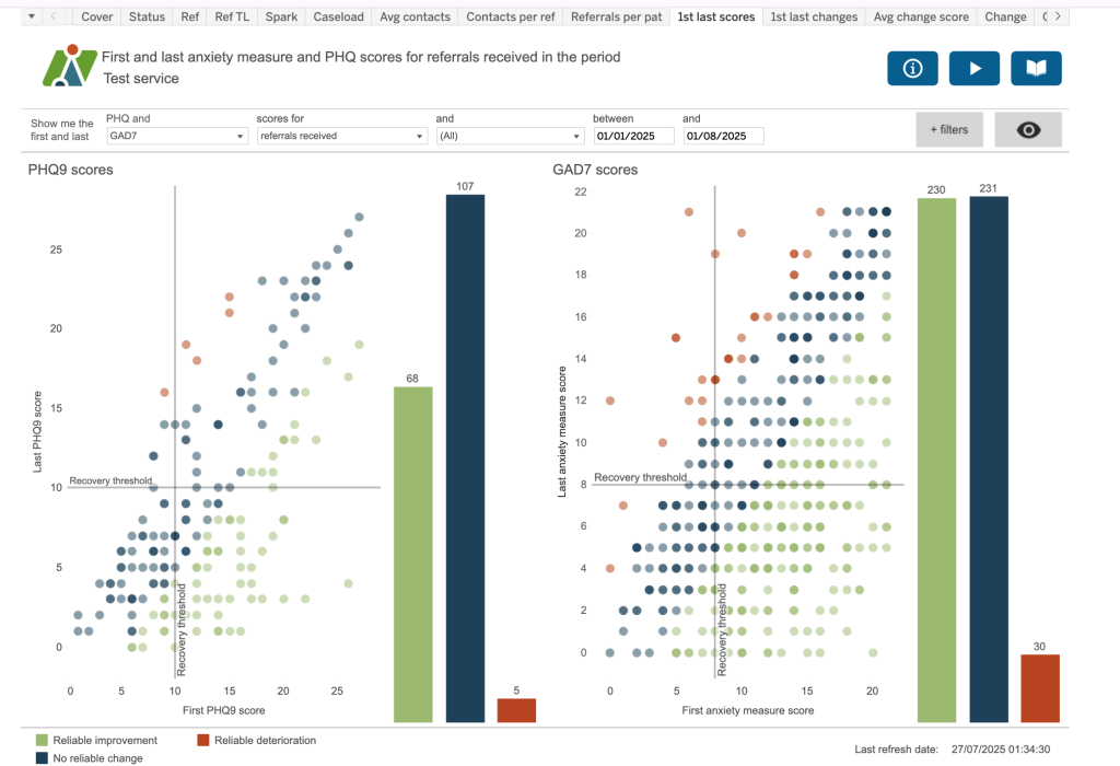 First and last anxiety measure and PHQ scores for referrals received in the period