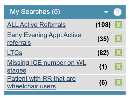 The number on the right hand side will display the number of patients or referrals that match the search criteria. These numbers will update every time you refresh the page or click to a new page in iaptus, so it is important to remember to limit your searches to only those you need to see on a frequent basis, as iaptus will run these searches every time you refresh or navigate to another page and, as discussed earlier, could cause a performance issue.