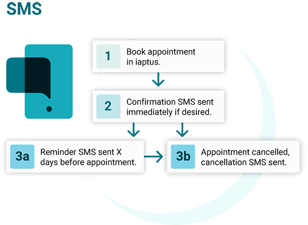 The iaptus integrated SMS feature allows automated appointment confirmation, reminder and cancellation messages to be set up.